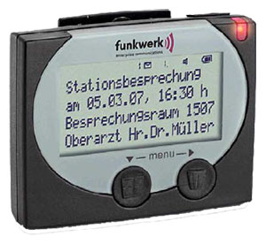 With the radio messaging system comprising the funkwerk OCP (Onsite Communication Processor) and the radio paging receivers of the funkwerk MR series, Funkwerk Enterprise Communications GmbH offers an alphanumeric, radio-based information and messaging system meeting even the highest standards for your in-house communication infrastructure.